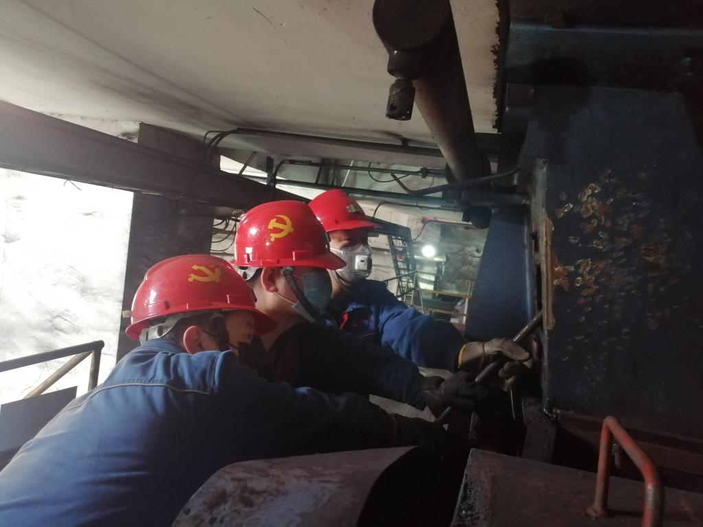 “是共產黨員就站出來!”班長朱干文話音剛落,三名黨員站到他身邊。朱干文強調:“面對新型冠狀病毒,各條戰線上的共產黨員不畏艱險,沖鋒在前,我們要向他們學習。在我們面前,要疏通這堵塞蓬煤的萬噸原煤倉,穩定原煤供應,保證精煤洗選,大家有沒有信心?”三人齊聲說“有!”