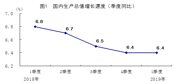 2018年各季度及2019年一季度GDP環(huán)比增速分別為1.5%、1.7%、1.6%、1.5%和1.4%。